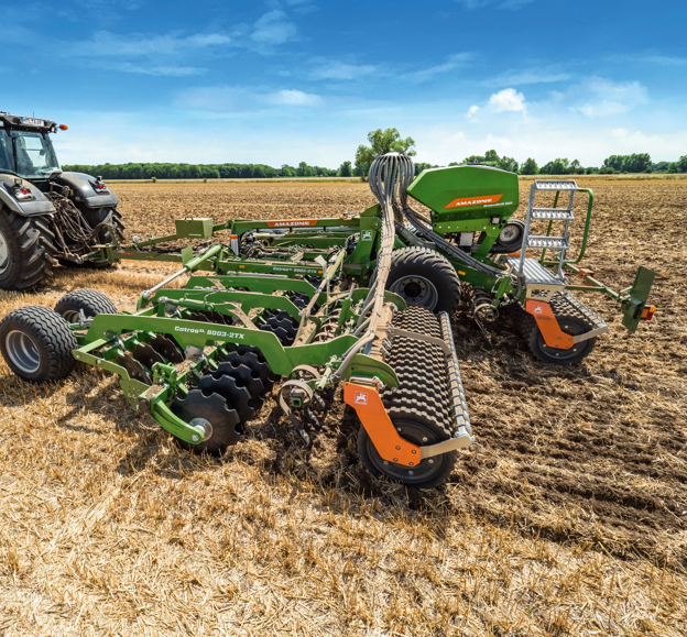 CatrosXL 03-2TX s ir radīts izaicinājumiem bagātām saimniecībām, kur nepieciešama efektīva un intensīva augsnes apstrāde ar augstu organiskās vielas daudzumu. Atvērtā rāmis un plašais materiāla caurlaidības dizains nodrošina nepārtrauktu darba plūsmu pat lielākos darba platumos no 7 līdz 8 metriem, saglabājot izcilu manevrētspēju un stabilitāti pateicoties centrālajam TX piedziņas balstam. Ar 610 mm diametra diskiem, gan smalkiem, gan rupji zobainiem, CatrosXL 03-2TX ērti sasniedz darba dziļumu līdz 16 cm, nodrošinot vienmērīgu un intensīvu augsnes sajaukšanu. Hidrauliskā Smart Frame System regulē darba dziļumu ar precizitāti un ērtu piekļuvi, ļaujot viegli pielāgoties dažādiem apstākļiem. Individuālā disku balstiekārta ar gumijas atsperu buferiem ne tikai seko augsnes kontūrai, bet arī nodrošina uzticamu akmeņu aizsardzību bez nepieciešamības pēc apkopes. Mūža eļļošanas gultņi ar sešļakšu tipa blīvēm garantē bezrūpīgu darbību ilgtermiņā. ContourFrame sistēma katrai darba sekcijai ļauj neatkarīgi pielāgoties reljefam, tādējādi nodrošinot vienmērīgu darba dziļumu un augstu caurlaidību. Kā papildaprīkojums pieejams arī Crushboard, kas sagatavo sēklu gultni optimālai sējai, un GreenDrill sējmaiss integrētai sējas risinājumu kombinācijai.