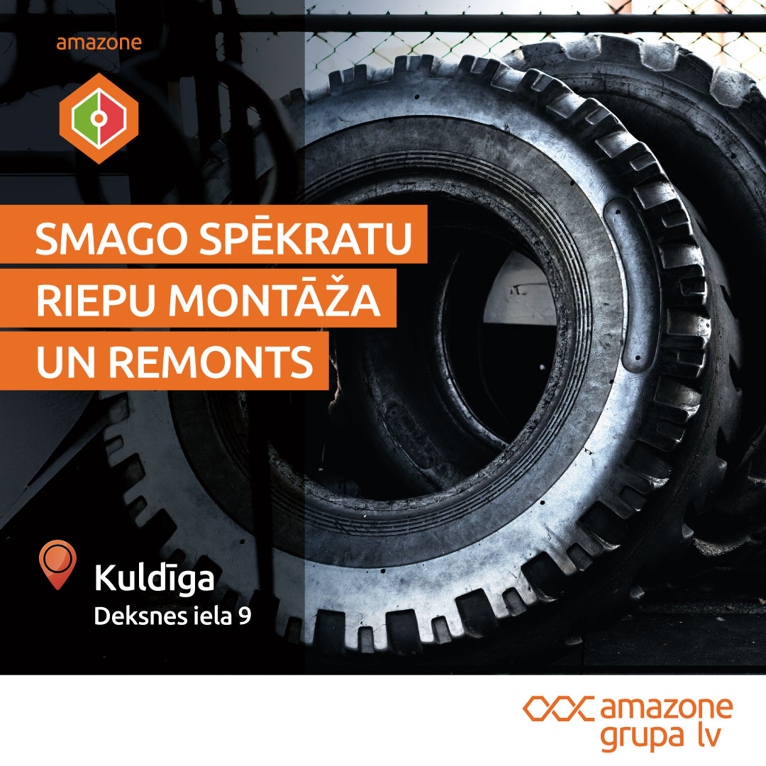 SIA "Amazone" Kuldīgas filiālē ir iespēja veikt smago spēkratu riepu montāžu un remontu. Apkalpojam traktorus, kombainus un citu lauksaimniecības, mežsaimniecības un industriālo tehniku.