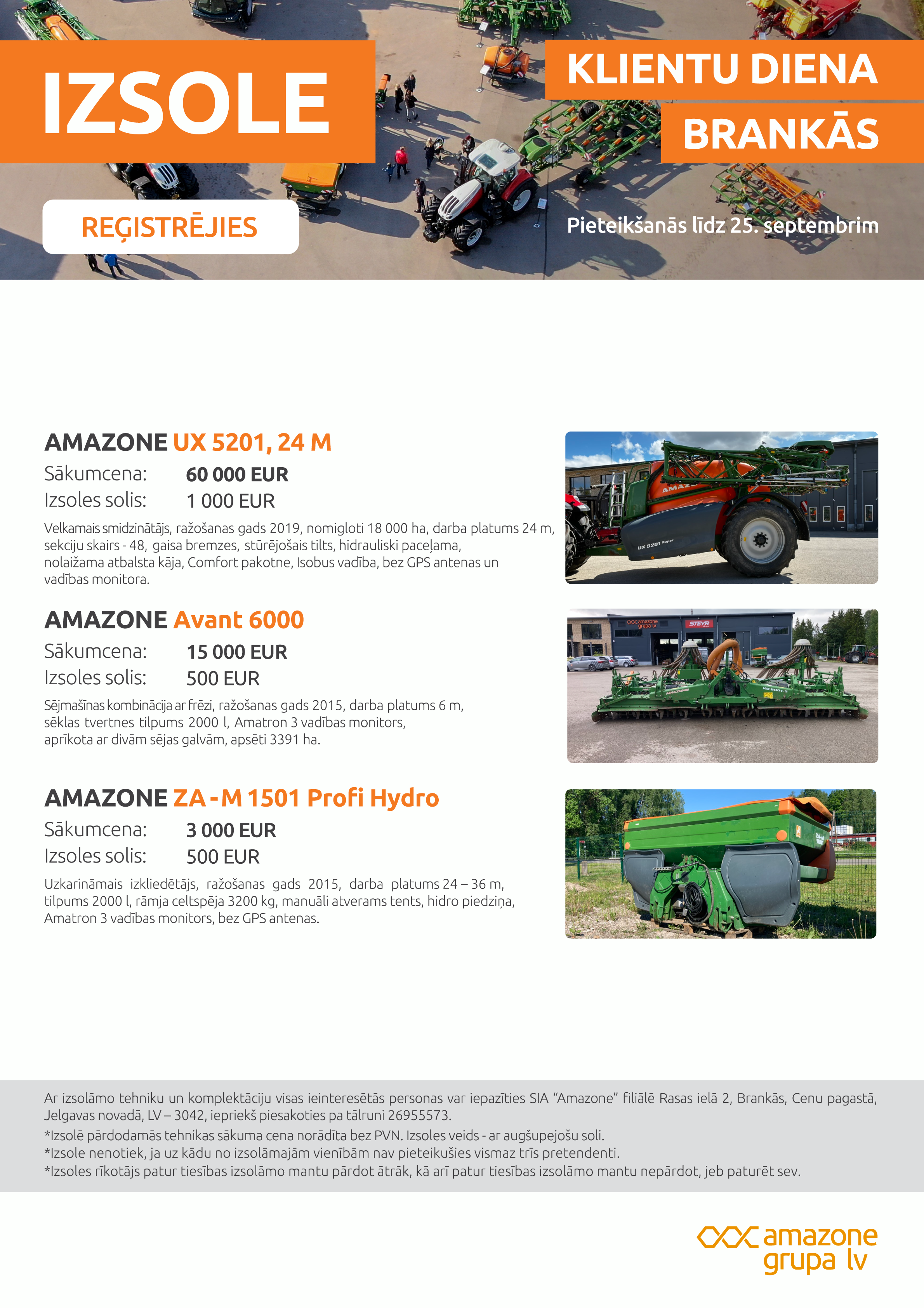 Piedalies AMAZONE lietotās tehnikas izsolē KLIENTU DIENĀ!