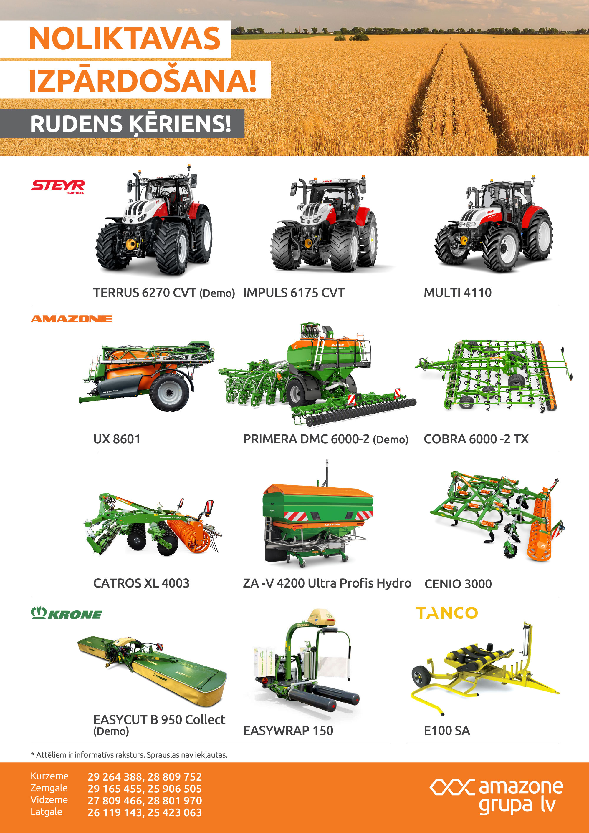 AMAZONE, STEYR, KRONE un TANCO noliktavas tehnika par īpaši izdevīgām rudens cenām!