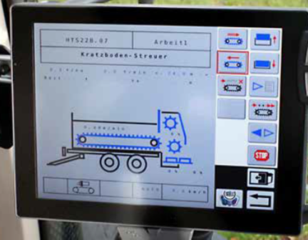 ISOBUS terminālis var būt integrēts traktorā vai pieejams kā atsevišķs aprīkojums, un tas ļauj ar lielu precizitāti pārvaldīt piekabes funkcijas, piemēram, izkraušanas ātrumu, sadales darbības vai darba dokumentēšanu. Termināļa ekrāns ir lietotājam draudzīga un viegli saprotama, nodrošinot ērtu un drošu darbu lauka apstākļos.