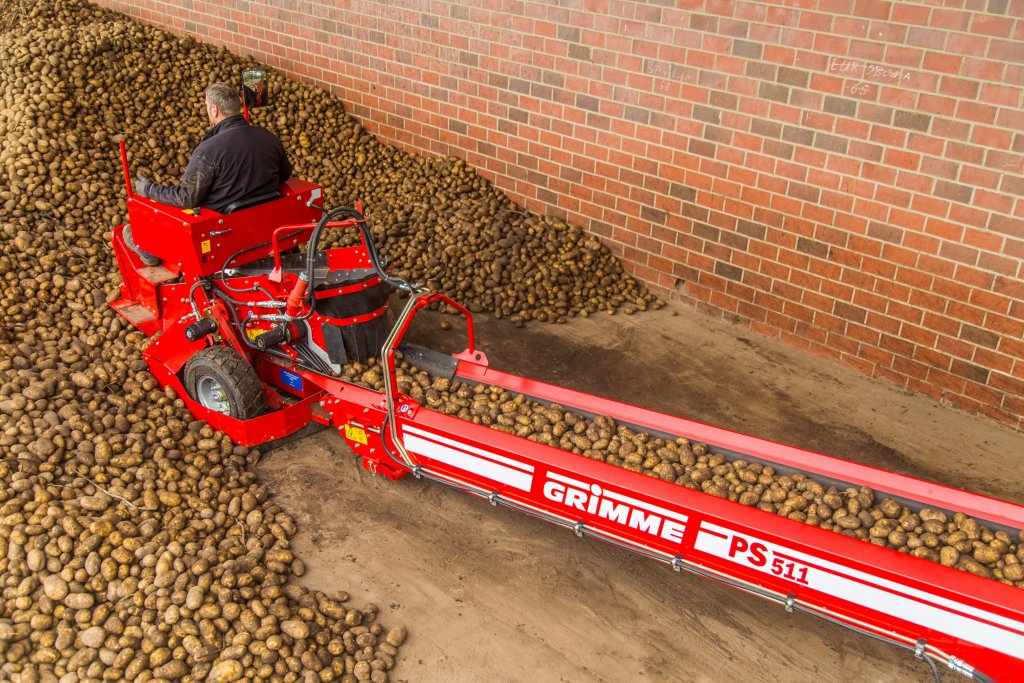 Produkcijas pacēlājs PS 511 nodrošina efektīvu ražas pacelšanu un turpmāku novadīšanu uz konveijeriem. Šis produkcijas pacēlājs darbojas 11 m diapazonā un ir aprīkots ar 50 cm platu lentu. Bezpakāpju augstuma regulēšana izlādes pusē, kā rezultātā tiek nodrošināta saudzīga ražas apstrāde. Bezpakāpju konveijera ātruma regulēšana nodrošina produkcijas pacēlāja optimālu izmantošanu dažādos darba apstākļos. Hidrauliskā vadība un piedziņa nodrošina ērtu, ātru un precīzu produkcijas pacēlāja pozicionēšanu. Regulējot darba diapazonu, produkcijas pacēlāja pozīciju iespējams mainīt bez nepieciešamības pārvietot ražas uzglabāšanas līniju.