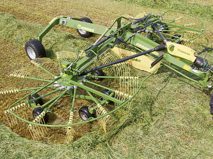 Riteņi zem KRONE Swadro rotoriem vienmēr saglabā kontaktu ar zemi, pat visnelīdzenākajā reljefā. Lielākā iespējama kontaktvirsma un plašais grozīšanās diapazons, kombinācijā ar piemērotām riepām, nodrošina, ka neviens stiebrs netiek atstāts neuzgrābts un zālājs netiek bojāts. Tīri un neskarti zālāji ir pamats augstas kvalitātes lopbarībai arī nākamajā pļāvumā.