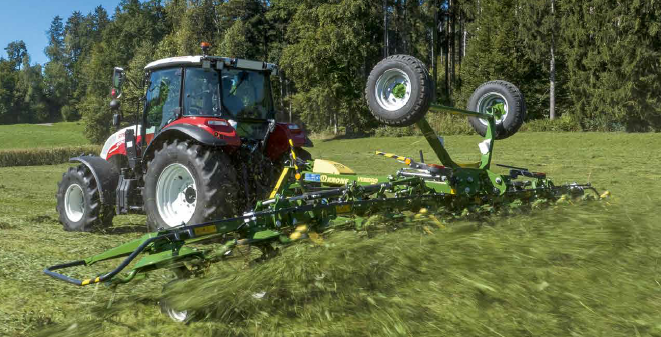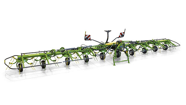 KRONE zāles ārdītāju sērija piedāvā modeļus ar darba platumu no 4,70 līdz 11,20 m, nodrošinot precīzu lauka kontūru ievērošanu un augstu lopbarības kvalitāti. Vadības riteņi un jaunie 3D OptiTurn zari efektīvi paceļ un izkliedē zāli, savukārt kompaktais rāmis, stabilie balsti, LED apgaismojums un automātiski salokāmi aizsargstieņi garantē ērtu lietošanu, drošību un maksimālu efektivitāti.